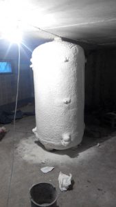 Крім цього методом заливки ППУ виконуються роботи по теплоізоляції резервуарів, що мають двох стінну конструкцію.